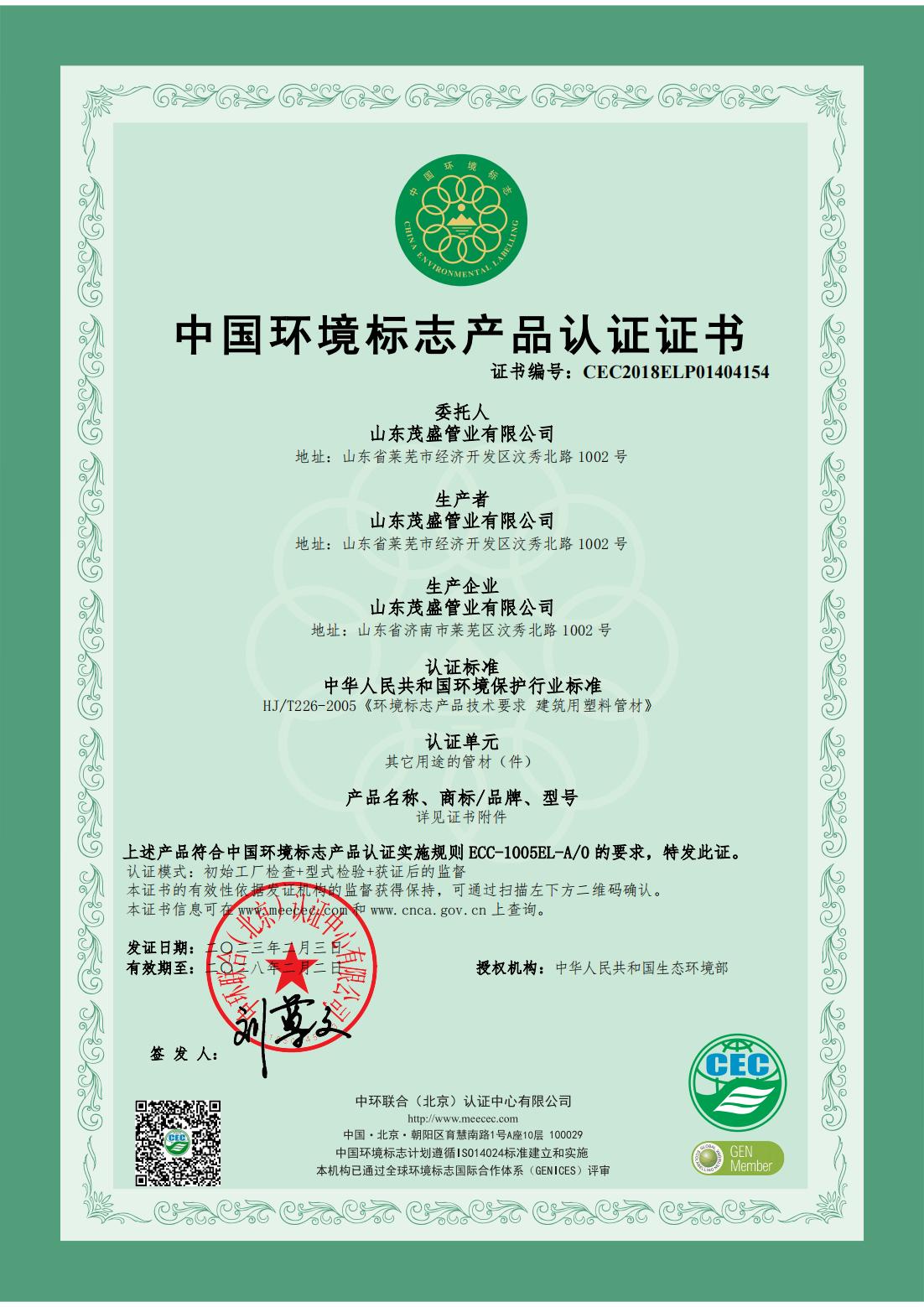 中國環(huán)境標(biāo)志產(chǎn)品認(rèn)證證書